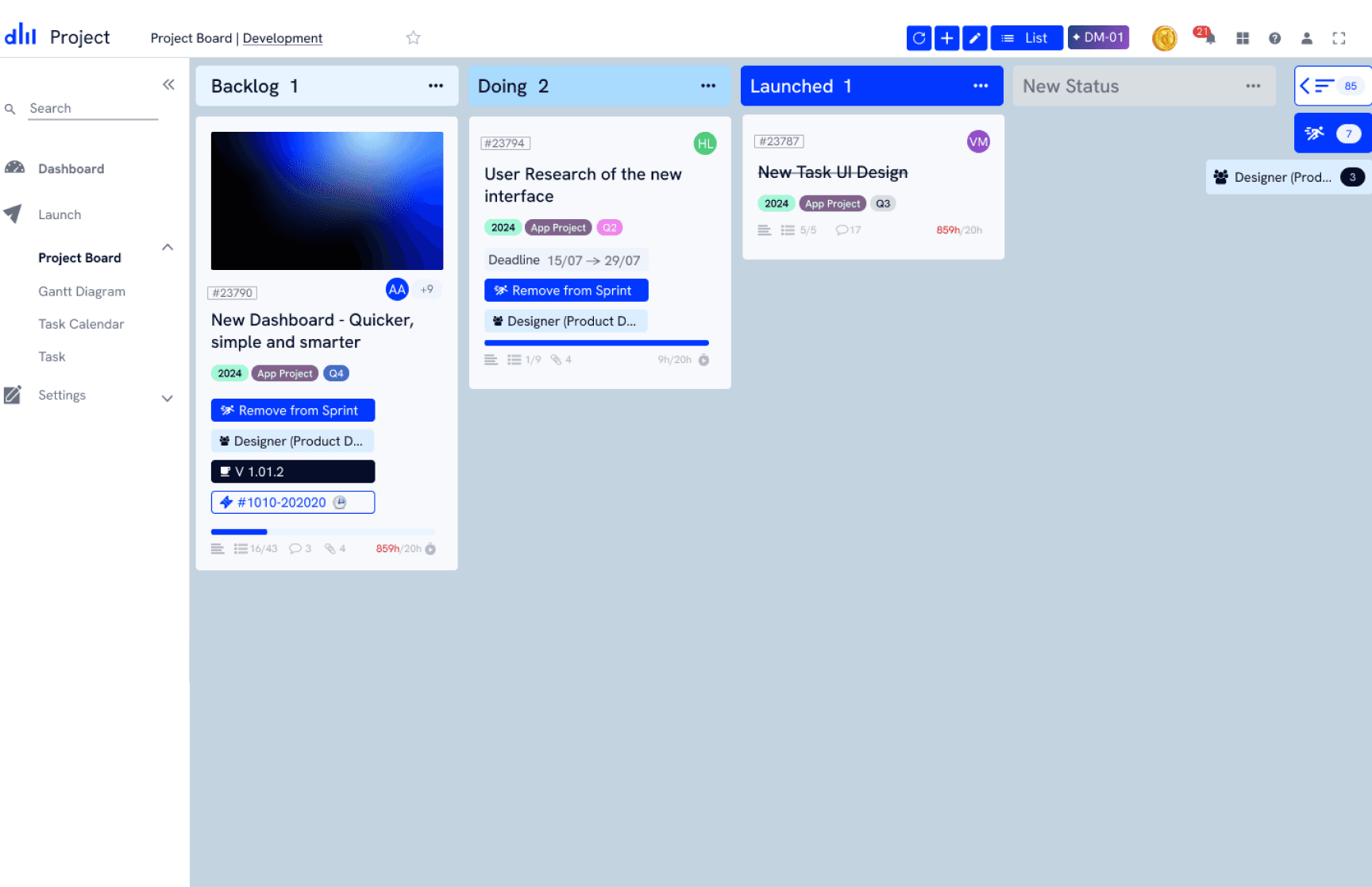 Kanban board before and after the redesign. Here we can manage the tasks within the status